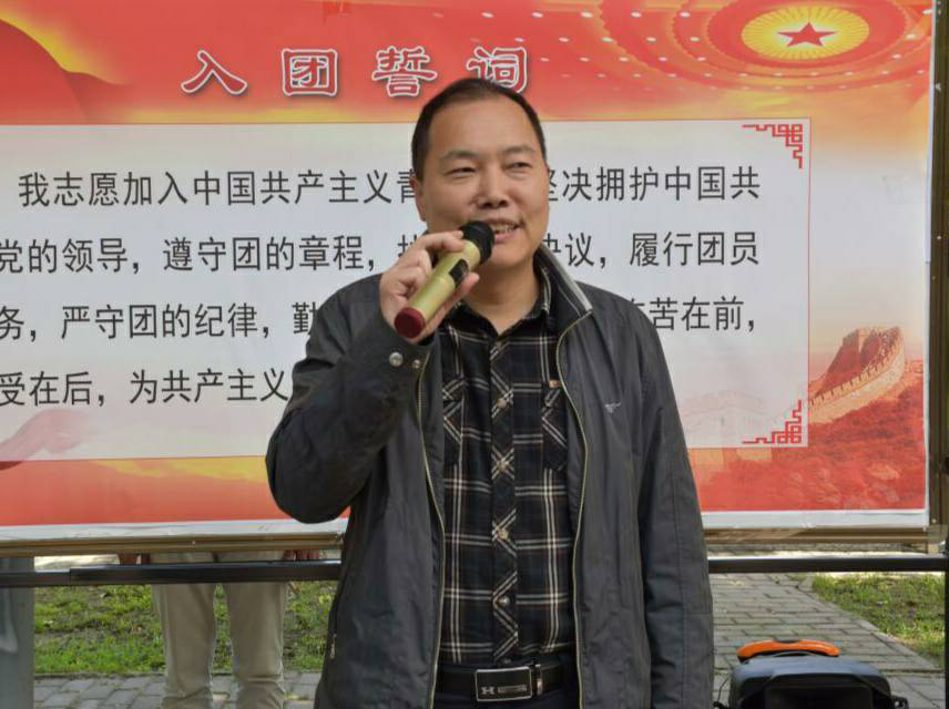 面对鲜艳的共青团旗,在团员代表的带领下,大家举起右手,面对团旗,新团员宣誓、老团员重温了入团誓词。