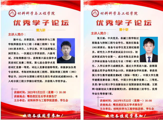 在鄠邑校区弘石报告厅举办优秀学子论坛第九讲和第十讲,本期邀请到的优秀学子是机械工程豪门国际