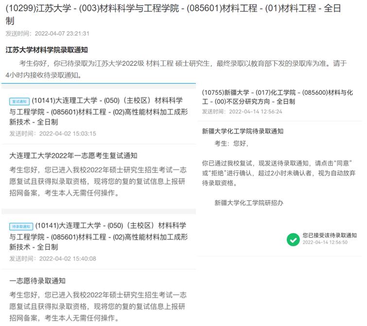 披星戴月走过的路终会以繁花以答。终于在四月初,王园媛成功调剂到江苏大学,杨思琦成功调剂到新疆大学。至此,535终于全员上岸。虽然一路艰险,一路波折,但是最终的结果没有辜负她们的努力。