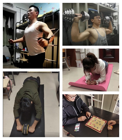 云健身活动:在发起云健身活动通知后,各年级学生积极响应号召,同学们利用现有器材举行不同的健身活动,大家重拾运动热情,相继解锁宿舍锻炼的新模式,既有俯卧撑、瑜伽、乒乓球、太极拳等日常锻炼活动,也有趣味性强的棋艺益智类活动。通过每日健身活动,展现出了材料学子健康阳光、积极向上的生活态度,相信不久的日子,运动场上定会重现同学们矫健的身姿!