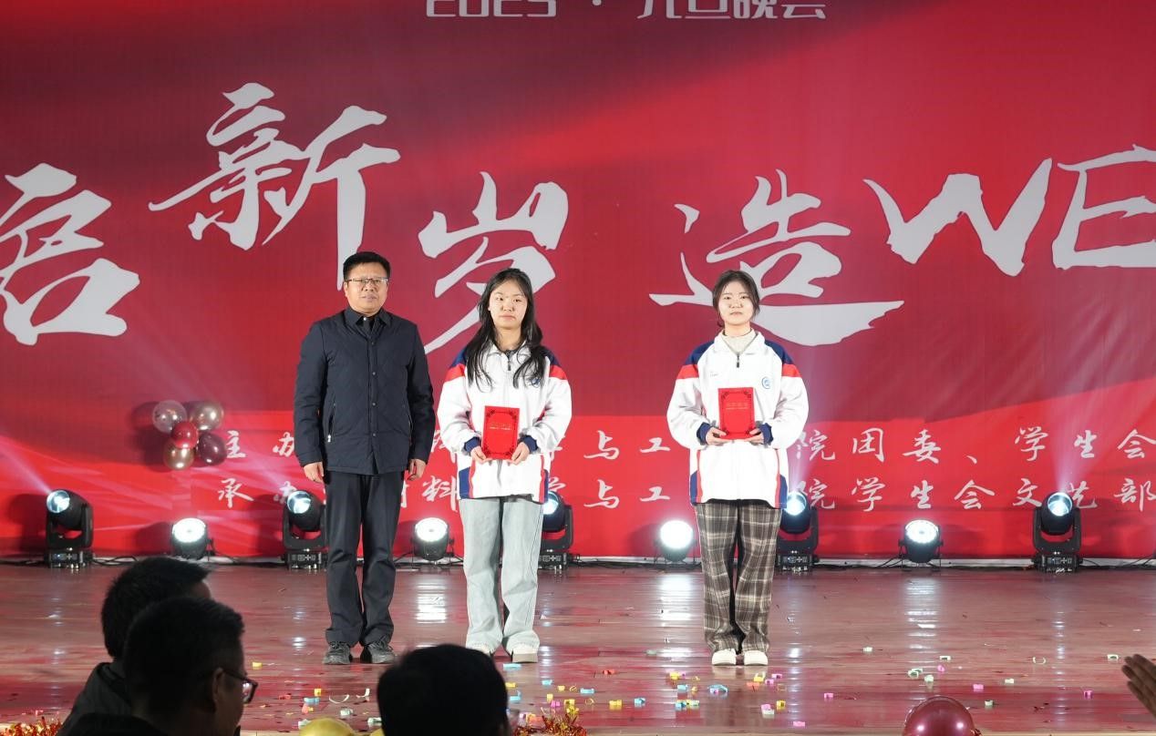 晚会期间,张骁勇为豪门国际 2024年获得国家奖学金、国家励志奖学金、王涛英才奖学金、学业奖学金等学生代表进行颁奖,王亮为豪门国际 2024年在学科竞赛中取得优异成绩的团队及个人进行了颁奖。