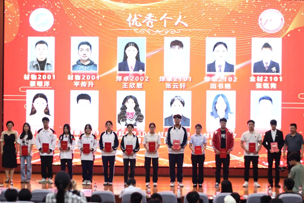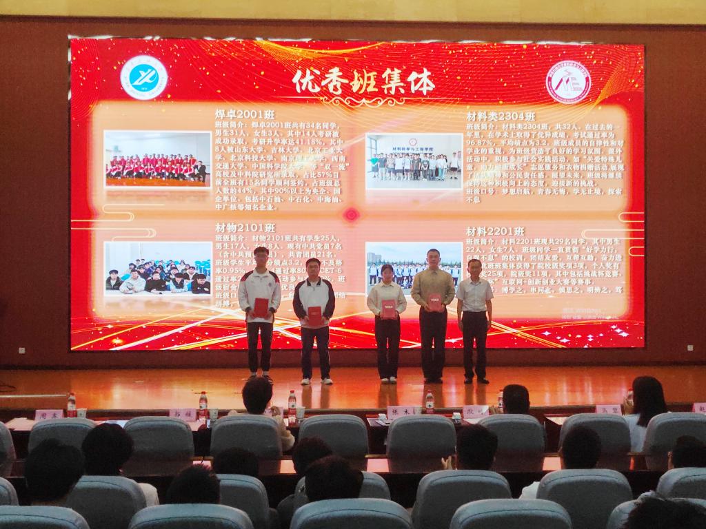 焊接(卓越)2001班刘乾作为优秀班集体代表作班级建设经验交流分享。他分别从班级基本情况、思想政治建设、班风学风建设和综合素质提升四个方面分享了焊接(卓越)2001班班级建设的经验做法和事迹成果。