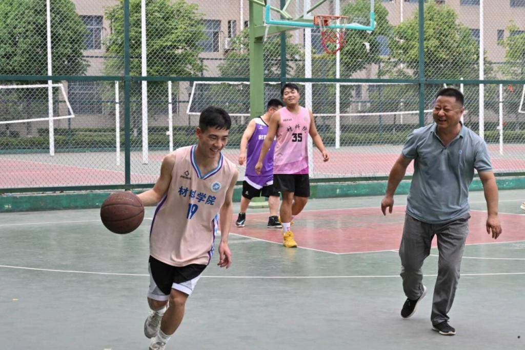 篮球场上,教师与学生们组成混合队伍,随着哨声的响起比赛正式拉开了序幕。毕业生们迎“篮”而上,积极调整战术,严密防守,奋力拼搏,展现青春的活力;老师们沉稳应对,配合默契,展现不可阻“篮”的风采。赛场上无论分数高低,师生们的脸上都洋溢着笑容,积极跑位、相互掩护、精妙传球,用活力与汗水传达着对运动和生活的热爱,毕业生们对老师的感谢和对学校的不舍,展现出了材料豪门国际
