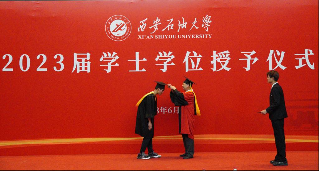 6月19日下午,我院2023届学士学位授予仪式在鄠邑校区图书馆弘石报告厅隆重举行,217名学士学位获得者依序上台拨穗正冠,为四年青春画上了完美的句号。