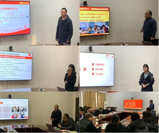 述职评议会上,强伟、徐向前、刘文婷、张雅妮、潘瑞娟等5位教工党支部书记分别从支部年度党建工作任务完成情况、围绕中心工作抓党建情况、创新及亮点工作、存在的不足及努力方向等四个方面,全面报告了一年来党支部工作的开展情况。