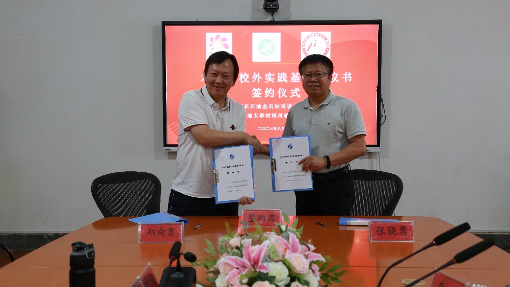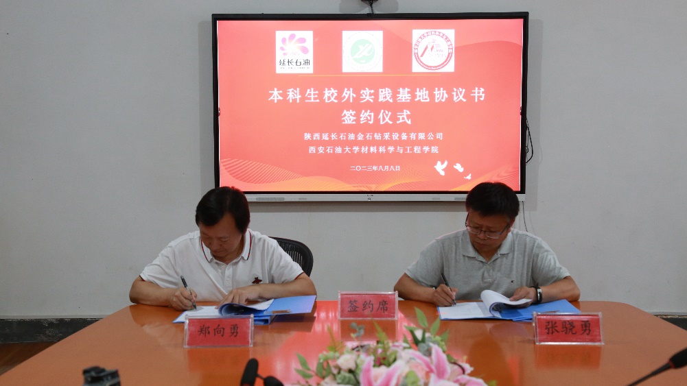 院长张骁勇与陕西延长石油金石钻采设备有限公司郑向勇总经理作为代表签署了本科生校外实践基地协议和战略合作协议。