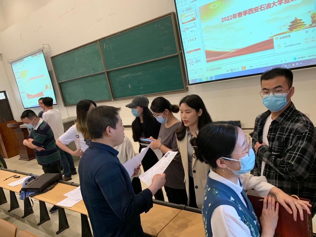 会后,专场招聘会分别在鄠邑校区天工楼115室和雁塔校区4号实验楼302室举行。本次招聘涉及石油工程、地质工程、机械设计、材料工程、金属材料、自动控制、计算机、项目管理、工程管理等专业。招聘会上,公司科研管理部长陈晨通过PPT展示向在场的同学们介绍了公司发展历程、组织架构、科研团队、市场分布、岗位需求、福利待遇、晋升和发展前景等方面内容,公司副总工程师曹海涛对等同学们感兴趣的问题进行了现场答疑,招聘会现场气氛热烈。最后,现场参加招聘会的同学投递了简历并且进行了应聘面试,最终有20余名同学与用人单位达成了就业意向。
