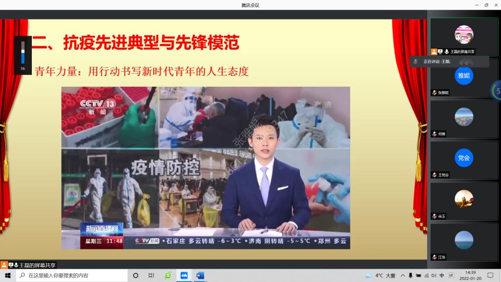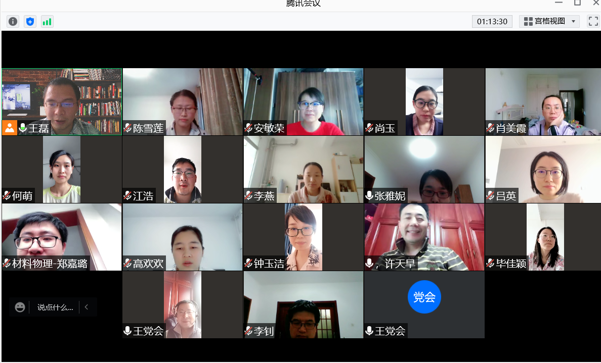 党委“弘扬伟大抗疫精神,同心抗疫共克时艰”线上特别主题党日活动安排,2022年1月20日下午,新材料系教工党支部开展了线上主题党日活动,就深入学习贯彻习近平总书记关于疫情防控的重要讲话和指示精神,贯彻落实中央、省委、省教工委关于疫情防控的各项决策部署,致敬并学习疫情防控中的先进典型与先锋模范,进行了深入学习与交流探讨。