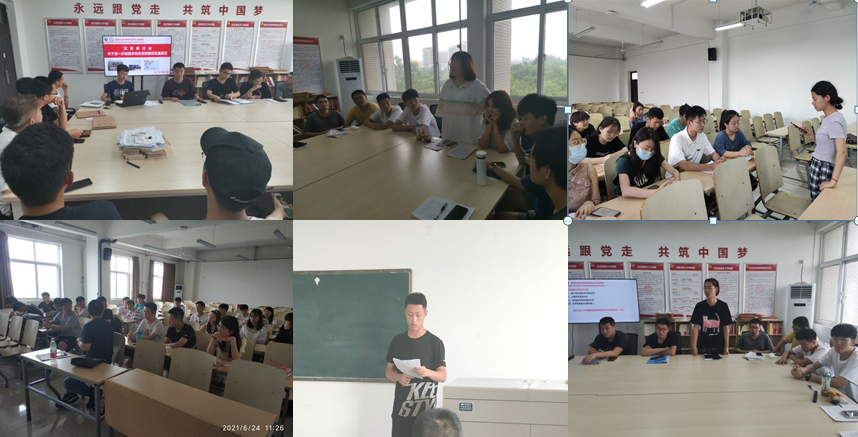学生第五党支部书记赵飞老师指出:作为共产党员,要把握“学史明理、学史增信、学史崇德、学史力行”的目标要求,切实做到学党史、悟思想、强信念、促学风,强化思想武装,提高政治站位,积极参加支部组织的各项活动;要在思想建设、学风建设、文体活动、学科竞赛、社会实践等方面积极带动其他同学共同进步。