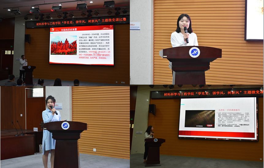 选手们分享了长征精神、长征小故事、抗美援朝小故事、土地革命、永远丰碑-赵一曼、南陈北李、致敬苍穹、家国天下、一条小船等几个主题的微党课,他们结合了中国共产党历史上发生的重大事件、重要会议、重要文件、重要人物等,以图文并茂、形象生动、深入浅出、生动活泼的讲解将催人奋进的、鲜活的党史故事和内容讲述给大家,赢得在场师生的一致好评。