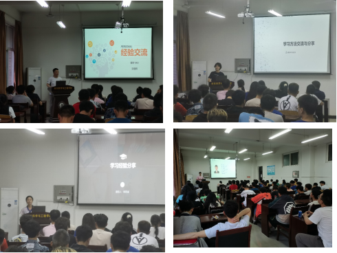 首先来自能材1901班的张高赫同学以诙谐幽默的风格为同学们分享了他的学习经验和对专业的思考,细化到每天的作息时间、注重抓住课堂时间学习,将专业知识与国家发展事业的紧密联系,善于学以致用勤思考,并向大家分享了自己对新能源材料与器件专业的认识和思考,并指出大学是自由的大学,一定要勤思考,及时复盘,才可以更好的度过,引发同学们的一致赞同。能材1902班的刘增辉同学围绕如何提升思维能力,以“如何应对我们的空窗期”为主题做出了深刻的阐释,以严密的逻辑,从是什么、为什么到怎么做,环环紧扣,娓娓道来, 谈到尽管行动会促进思考,但当你处于极端忙碌的状态下,就会变成一个不断执行任务的机器。忙碌可以,但是不要是无为忙碌,一定要合理规划好自己的时间,让每一位听者都不得不折服于他的深邃思维和对生活敏锐的洞察力及思考力。最后,他真诚地向大一学弟学妹们发表寄语:只是希望你明白,不是以后的每一年,都会成长的这么快,以此鼓励低年级的同学抓住黄金时间进行自我提升和学习。材物1801的“硬核学姐”张乃文同学围绕如何制定长期目标和短期目标,通过自己的努力逐渐实现目标的真实体会,切身向同学们展现了制定切实且有效的目标对于自身发展的重要性。发言中,她对于自己所热爱的物理的真情流露令在场的每位老师及同学都动容不已。正如张乃文同学自己所述,她将穷尽毕生经历去追求自己所热爱的事,给同学们带来更加深刻的思考。材物1801班的李思澜同学以她丰富的学科竞赛经历为例,给学弟学妹们分享了大学期间参与学科竞赛的宝贵经验和建议,以《阿甘正传》的一句台词:“人生就像一盒巧克力,你永远不会知道下一颗是什么味道。”人生充满意外也充满惊喜,建议同学们要找准定位,明确目标,了解自己适合的,然后做出正确的选择,而不是盲目跟风,做好时间管理,分清主次,合理的分配时间才能事半功倍,提高做事效率。在严谨风趣中让懵懂的大一同学对于专业学习及学科竞赛时间分配选择有了更加深入的认识和了解,也极大地激起了同学们参与学科竞赛的热情和兴趣。最后,来自材物1701班的郭志强同学以他丰富的获奖经历和研究生备考经历真切地告诉每位同学,大学四年应当如何有规划的高效度过,才能让我们在未来的毕业季收获满满硕果。与此同时分享了自己锻炼身体的感悟,强调身体是革命的本钱,只有拥有了强健的体魄,才能够有足够的精力去完成我们的学习和工作任务,也要有自己的兴趣爱好,爱好可以缓解日常学习工作压力,可以带给我们愉悦和笑容,更会提高做事效率。