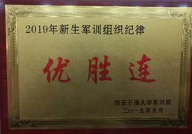 在为期两周的军训时光,在参训教官、老师和全体新生的共同努力下,我院军训工作取得了优异的训练成绩:荣获2019年新生军训宣传工作优胜连、组织纪律优胜连、歌咏比赛二等奖。军训工作的圆满结束为我院新生入学教育工作画上了完美的句号,期待大家在接下来的四年大学生活中能够继续巩固发扬特别能吃苦、特别能战斗的良好精神风貌,努力学习,全面成才。