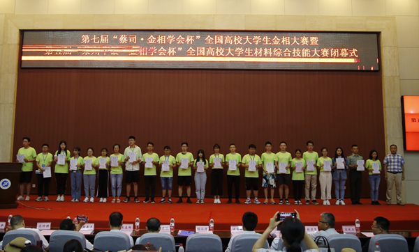 负责人,全体参赛师生参加了大赛闭幕式与颁奖典礼。程永清代表承办单位致辞。他对各位领导专家、各所参赛院校、赞助单位的大力支持以及为竞赛付出辛勤劳动的全体工作人员表示感谢,对所有获奖单位和个人表示祝贺。他希望大家能以本次大赛为契机,加强交流与学习,共同推动我国高校材料类专业“新工科”建设,不断提高材料学科和专业的育人质量。