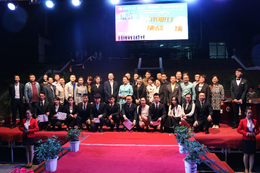 本次“职来职往”求职真人秀共分为自我展示、职场测评、职位选择三个环节,12名来自不同院系的同学通过播放个人VCR、登台自我介绍、提供求职简历、回答职业测评问题和企业HR提问等方式充分展示自己的风采和实力,台上有意向的企业HR向求职应聘同学介绍企业情况和岗位条件,最后由双方按自愿原则进行双向选择,最终10名选手都找到了自己心仪的岗位,如愿得到了“明日之星—校招直通卡”。