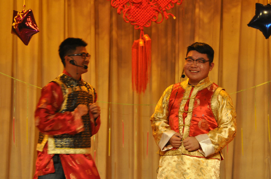 在舞台灯光的闪烁下,刚劲有力的开场舞《Wota艺》引爆全场;饱含深情的韩语歌《因为你太傻》和充满民族风情的舞蹈《黑走马》将晚会推向了高潮;小品《一试激起千层浪》和情景剧《we are 伐木累》使同学们明白了友情的珍贵、明确了大学生活的目标;“小周杰伦”和“lady Gaga”带来的歌曲串烧瞬间点燃全场激情;歌伴舞《茉莉雨》和乐器合奏《青花瓷》又仿佛把大家带入了另一种如诗如梦的境界;由几位老师带来的京剧名段选唱和歌曲更是掀起了整场晚会的高潮,老师们褪下了课堂上严肃的外衣,在舞台上尽情展现;相声《玩儿》以幽默的言语,搞笑的动作,夸张的表情,让人捧腹大笑,掌声、笑声不断;最后,晚会在大合唱《相亲相爱》的歌声中圆满落下帷幕。