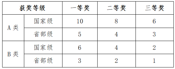 ①国内权威竞赛并获奖,根据获奖等级按下表进行加分:(20分)
