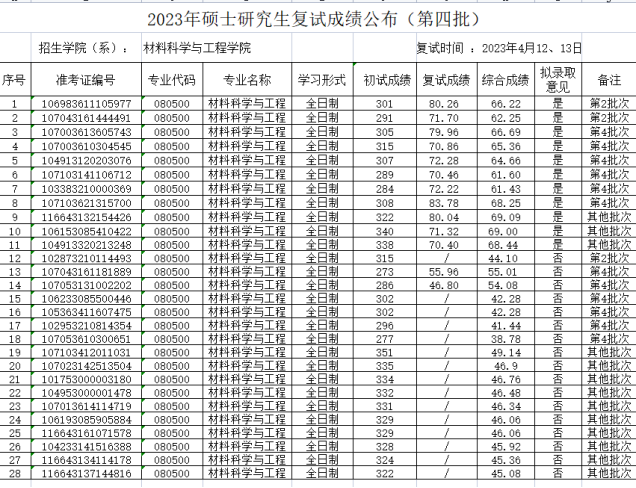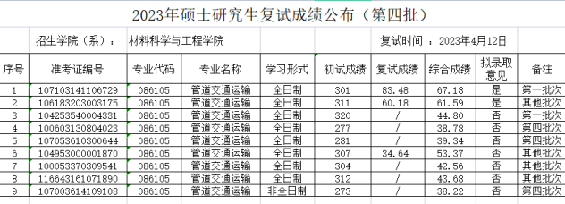 2023年硕士研究生复试成绩(第