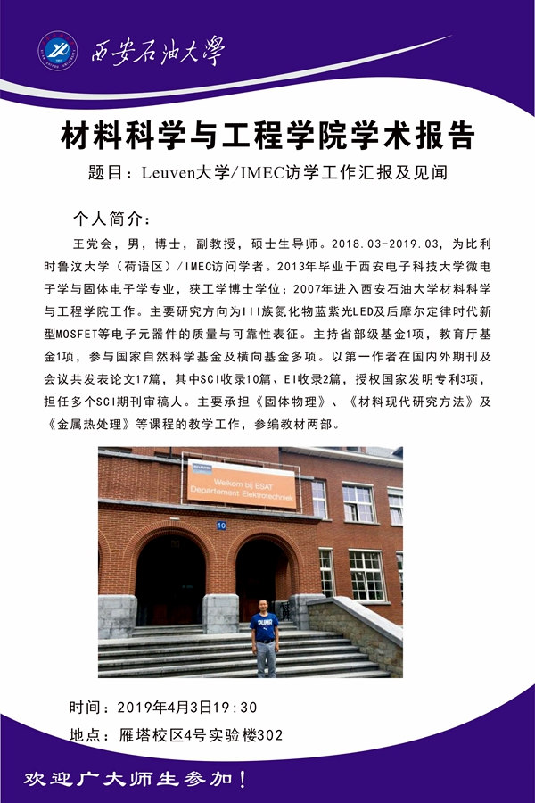王党会副教授学术报告通知