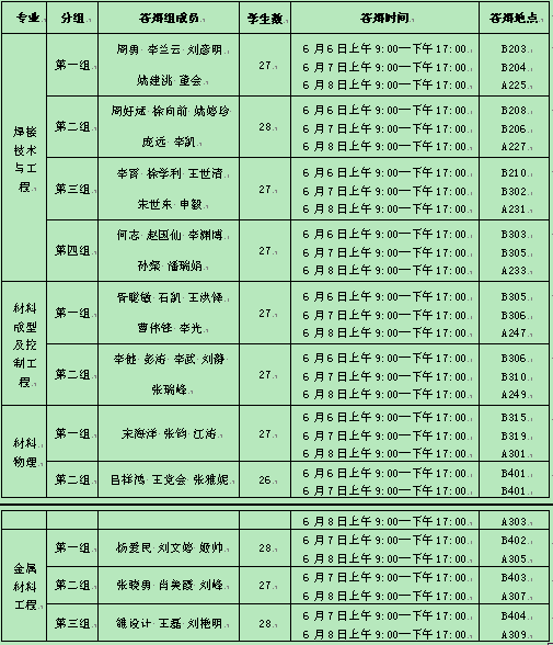 附:答辩分组学生名单见公告栏
