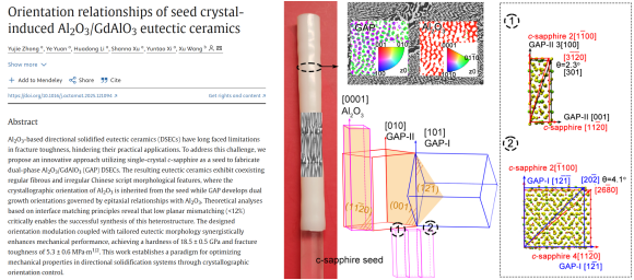 近日,我院钟玉洁科研团队再次以西安石油大学为第一单位,在材料顶级期刊《Acta Materialia》(中科院一区TOP期刊,五年影响因子9.3)上发表研究论文《Orientation relationships of seed crystal-induced Al2O3/GdAlO3eutectic ceramics》。