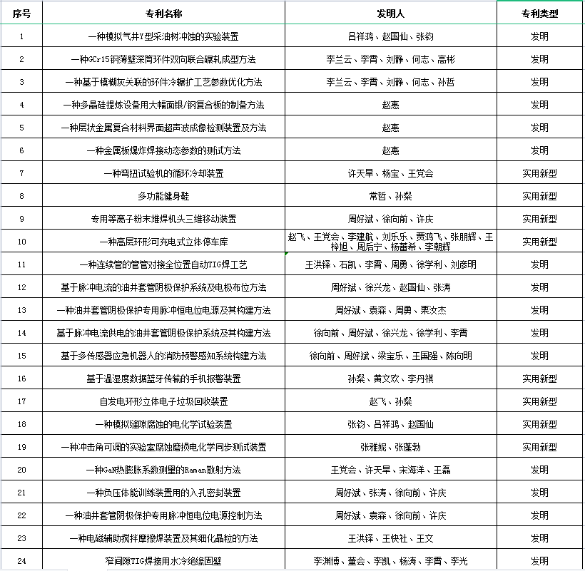 近几年有代表性的专利项目