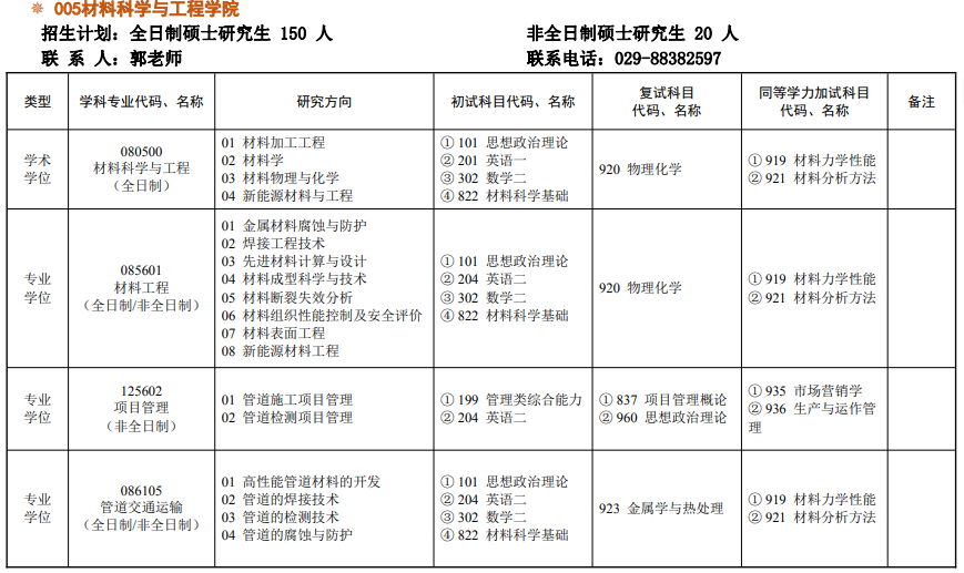 豪门国际 现拥有材料科学与工程硕士学位授权一级学科(该学科为省级优势学科),材料与化工硕士专业学位授权类别,是陕西省博士后创新基地,具有较为完整的人才培养体系。豪门国际 现有在读研究生258人。豪门国际 拥有“石油专用管的腐蚀与防护”陕西省重点科技创新团队、“焊接技术与工程”陕西省教学团队、新能源与新材料研究院、陕西省焊接钢管工程技术研究中心(共建)、现代分析测试中心,具有先进的分析与检测仪器和设备。